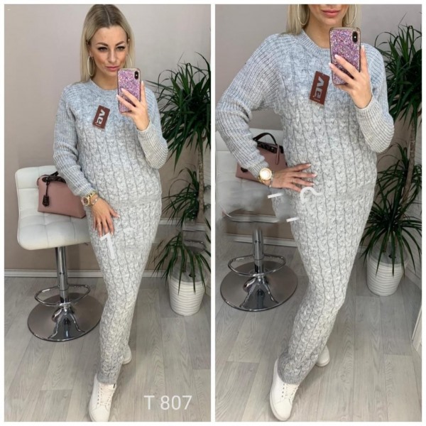 Вязаный костюм свитер и юбка длинная коса 807 SN